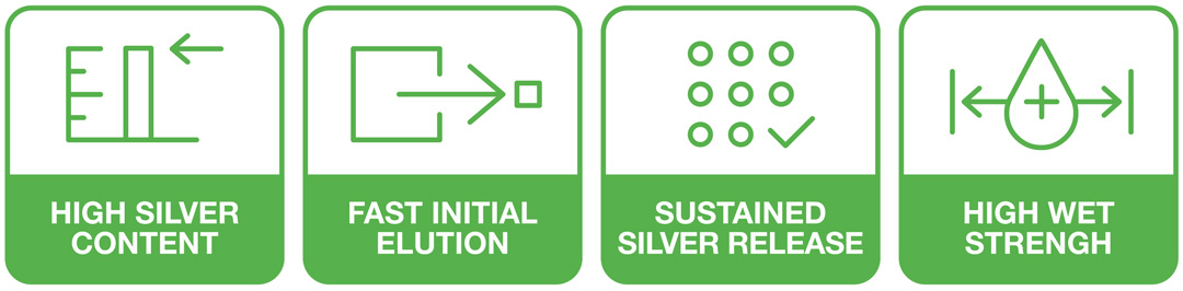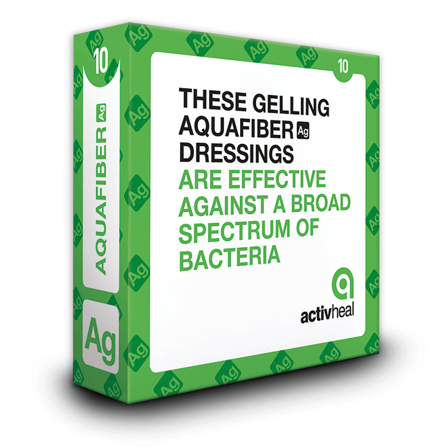 Clinical Evaluation: The management of exudates is an essential requirement in wound care. It is vital that an optimal moist wound environment is created and that the surrounding skin is protected from maceration and the subsequent risk of infection. ActivHeal® AquaFiber™ Ag is a high gelling antimicrobial wound dressing that has the ability to absorb high levels of exudate whilst maintaining a moist wound environment. The addition of silver ions results in a dual purpose dressing that is proven to be effective at exudate management, as well as being effective in eradicating a broad spectrum of microorganisms including antibiotic resistant strains such as MRSA, MRSE and VRE.