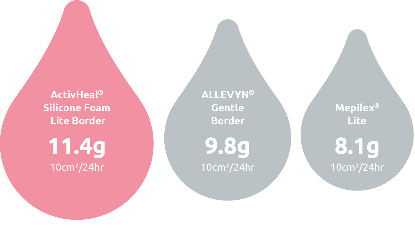 ActivHeal® Silicone Foam Lite dressing manages exudate in non to low exuding wounds and provides a moist wound environment which aids the wound healing process. The dressing helps to minimise maceration and damage to the surrounding skin. The perforated silicone wound contact layer aids atraumatic removal, enables exudate uptake, and prevents ingress of granulation tissue into the dressing.