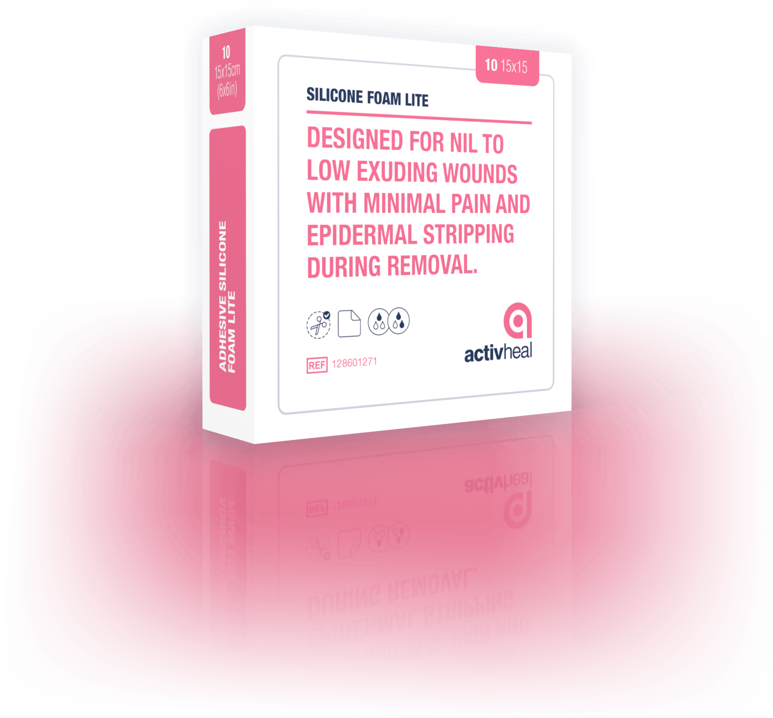 ActivHeal® Silicone Foam Lite dressing is a sterile wound dressing that is soft, thin and discreet and comfortable to anatomical contours. The dressing is breathable and manages non to low exuding wounds. The dressing is easy to remove and provides a gentle but secure adhesion to skin with minimal epidermal stripping and pain during removal.