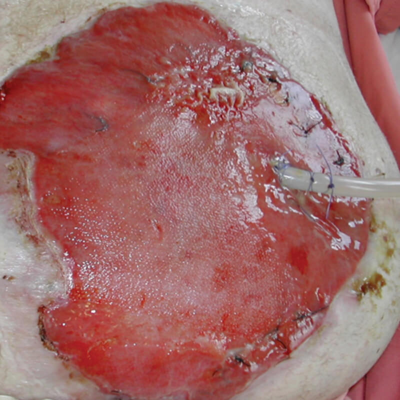 Granulating tissue is usually deep pink in colour at the base with red ‘lumps’ over the surface.