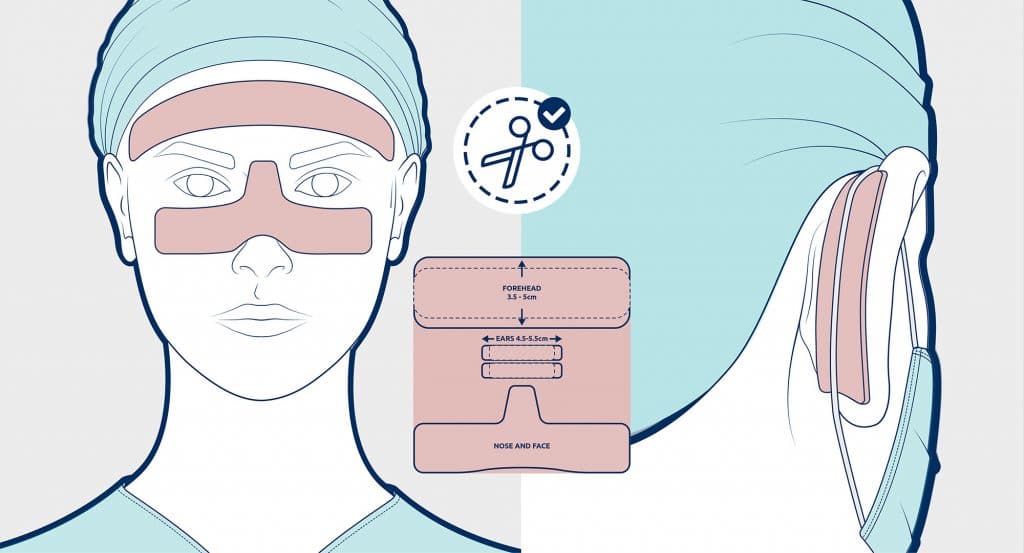 With the use of a silicone foam dressing and our downloadable cutter guide and instructions, the dressing can be adapted to act as an interface between the skin and PPE, minimising pain and trauma.
